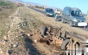 اصطدام شاحنة بعربتين مجرورتين بالدواب بالطريق الرابطة بين مراكش وايمنتانوت